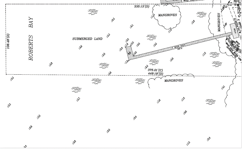 A lot goes into whether you're able to build a dock/pier as seen from our last tip, but once built, additional things to consider are the water depths needed to legally accommodate the vessels you're hoping to launch and moor. Buyers should take inventory of the types of watersports they and their family are hoping to enjoy. It may ultimately rule out otherwise incredible homes. It will also help your realtor zero in only on ones that allow you to live your preferred lifestyle. After all, we can't think of many people that would want to spend a portion of their day looking at their dream home only to have them find they would need to sacrifice their favorite hobby. Sellers should have permits of dock construction/repair and confirm the ability to moor or launch vessels (motorized or not) before the marketing a home with these capabilities. Your realtor will do the legwork of getting a bathymetric survey if needed to verify the depths of the surrounding waters and draft/clearance regulations associated with local sea life, as seen in the example below. They'll also be able to obtain the setback requirement, the distance by which a building or part of a building is set back from the property line, for added pools or fences if needed.